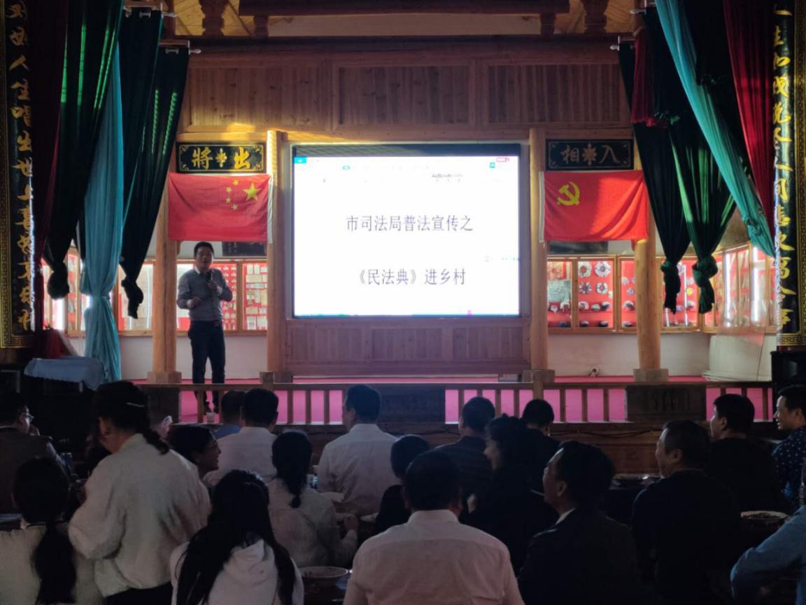 9月24日下午,贵溪市司法局组织机关干部来到泗沥镇王湾村民俗博物馆开展新时代文明实践暨送法进乡村宣传活动,引导广大群众关注、学习、了解民法典。