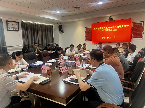 9月22日,市司法局召开党组(扩大)会议,深入学习贯彻习近平总书记关于深入贯彻中央八项规定精神学习教育的重要指示精神和中央党的建设领导小组会议精神,认真学习传达省委、市委常委会精神,全面总结我局深入贯彻中央八项规定精神学习教育开展情况,并部署下一步工作。局党组书记、局长邵菁靓主持会议并讲话,局领导班子成员、各科室及下属单位负责人、局机关支部书记参加会议。