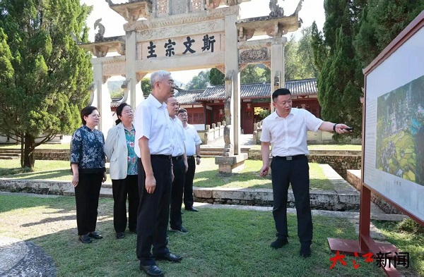 9月28日,省委书记尹弘深入上饶市,专题调研书院文化保护传承和新时代文明实践融合发展工作。他强调,要深入学习贯彻习近平文化思想,坚持从“两个结合”的高度,深刻把握、挖掘弘扬书院的时代价值,始终坚定文化自信,更加注重以文化人,推动书院文化与文明实践融合发展,为现代化江西建设提供有力精神支撑。