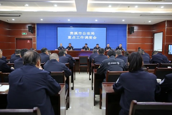 11月4日,贵溪市公安局召开十月份重点工作调度会。会议由贵溪市公安局党委副书记、常务副局长朱国标主持,鹰潭市公安局副局长、贵溪市政府副市长、公安局局长张世洪出席会议并讲话。在家局领导和各科所队负责人、副职等参加会议。