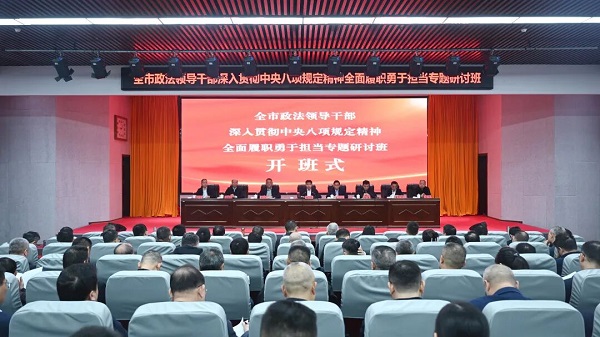 11月5日,全市政法领导干部“深入贯彻中央八项规定精神 全面履职 勇于担当”专题研讨班在市委党校开班。市委常委、市委政法委书记褚小涛出席开班式并作辅导报告。市政府副市长、市公安局局长刘江主持,市人民检察院检察长张江出席开班式。