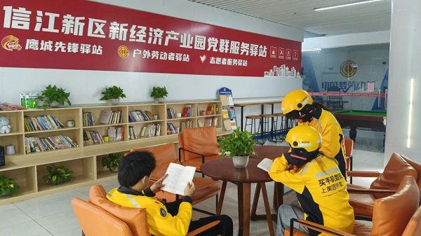 依托社区、商圈、银行网点等场所,建成一批配备饮水机、微波炉、充电设备、应急药箱、休息座椅等设施的“暖新驿站”,为骑手提供“冷可取暖、热可纳凉、渴可喝水、累可歇脚”的贴心服务,有效改善他们的工作休息环境。