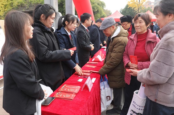 12月4日上午,鹰潭中院组织干警积极参与全市“12·4”国家宪法日集中宣传活动。