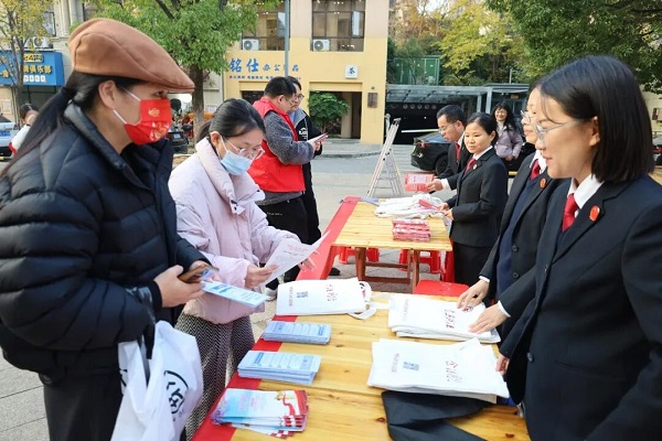 12月8日下午,鹰潭市余江区人民法院组织青年党员干警深入辖区磨仂洲社区,以一张长桌、几块展板的简朴形式,开展了一场聚焦民生、贴近群众的现场普法活动。干警们围绕宪法知识及物业管理、婚姻家庭、消费者权益保护等与群众生活密切相关的法律法规,提供面对面的咨询与解答,受到社区居民的欢迎。
