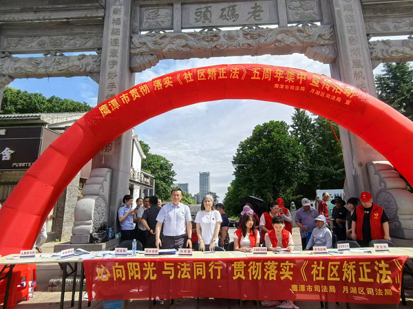 联合市民盟、市法院、市检察院、市公安局、月湖区司法局、江西赣鹰律师事务所等单位,在月湖区老码头广场开展了鹰潭市贯彻落实《社区矫正法》五周年集中宣传活动。通过举办工作成果展、制作法治宣传展板、印发法律宣传资料、开展现场法律咨询、举行有奖知识问答等多种形式,全方位展示我市社区矫正工作成就,普及社区矫正法律知识,提升社会各界对社区矫正工作的知晓度、支持度和参与度。