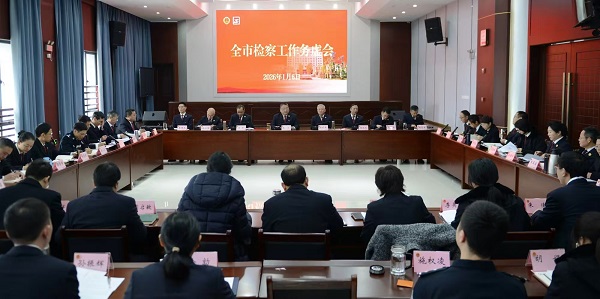 1月6日,鹰潭市人民检察院召开全市检察工作务虚会,深入学习贯彻党的二十届四中全会精神,紧紧围绕大检察官研讨班精神和省委、市委具体部署要求,总结全市检察机关“十四五”期间工作成效,谋划2026年工作思路。市检察院党组书记、检察长张江主持会议并讲话。